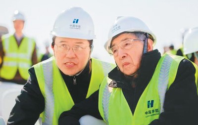 张作义(左)与中国科学院院士王大中在核电工程现场。