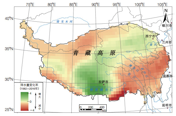 | 图 1 1982—2016年青藏高原降水变化趋势 |