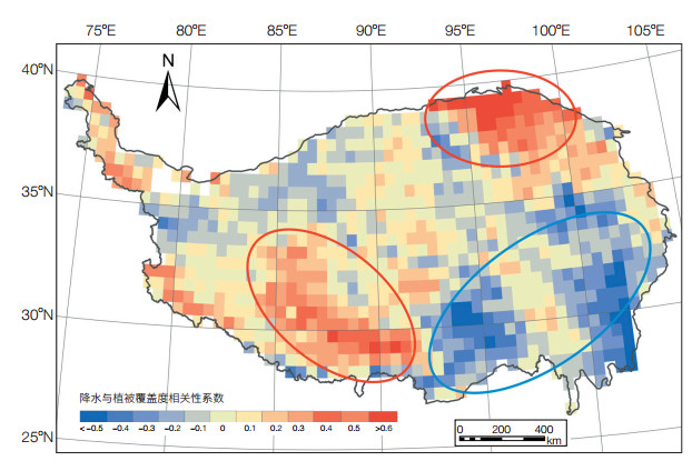 | 图 2 青藏高原降水与植被覆盖度相关性空间分布 |