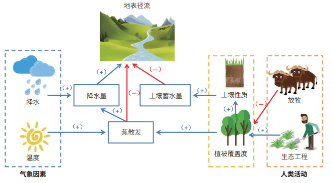| 图 3 水源涵养功能的土壤-植被-大气系统促进( )或抑制(−)作用 |