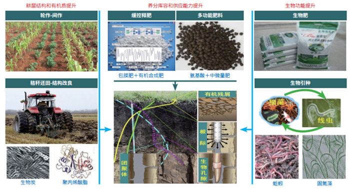 | 图 1 建立“有机质-养分库-生物功能”协同提升的肥沃耕层构建理论和耕地保育技术模式 |