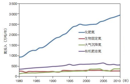 | 图 1 1980—2010年间我国农田土壤氮素主要来源及其变化趋势 |