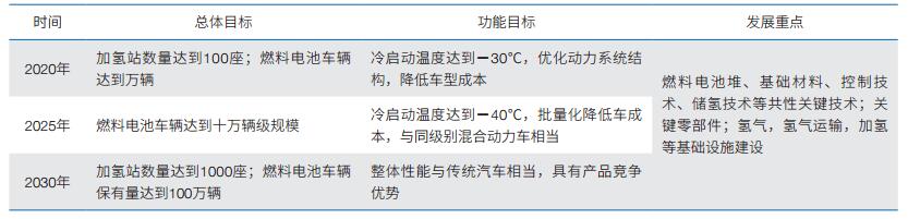 在氢能和燃料电池发展方面,我国也一直不落后。2016年10月,中国标准化研究院资源与环境分院和中国电器工业协会发布的《中国氢能产业基础设施发展蓝皮书(2016)》 [12]首次提出了我国氢能产业的发展路线图(表 1)。对我国中长期加氢站和燃料电池车辆发展目标进行了规划。《中国制造2025》明确提出燃料电池汽车发展规划,更是将发展氢燃料电池提升到了战略高度。目前不论是国内的氢能技术,还是氢能产业基础,虽然都具有一定的战略规模,但是与国际最先进水平还有一定的差距。