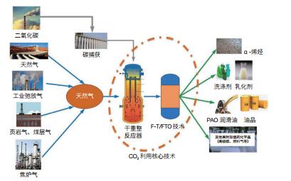 | 图 2 以甲烷-二氧化碳干重整为核心的技术路线图 |