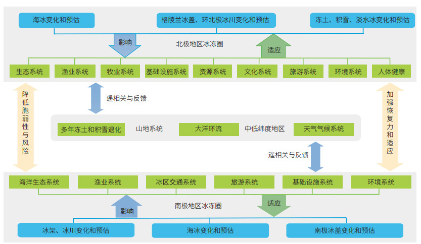 我国是中低纬度冰冻圈最发育的国家,但冰冻圈大多分布于经济发展相对落后和生态环境脆弱之地。同时,我国也是近北极国家,北极地区冰冻圈变化的影响也波及我国。南极地区不仅是国际科技竞技场,也是国际战略争夺的重要区域。因此,我国不仅需要对国内冰冻圈影响的提出区域尺度适应方案,如制定“亚洲水塔”水安全战略、推动水合作、建立科学的利益分享与补偿机制、完善跨境河流水争端解决机制、加强冻土区生态恢复和保护措施及冰冻圈灾害风险和管控方案等,还要大力提升南、北极冰冻圈变化的适应对策研究。