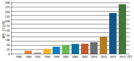 | 图 2 1985—2019年中国猕猴桃种植面积 |
