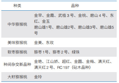 中华猕猴桃和美味猕猴桃的品种结构由早期绿肉品种面积占到70%以上,下降到50%—60%;年产量由占到80%以上,下降到60%—70%。除中华猕猴桃和美味猕猴桃外,增加了软枣猕猴桃类型。至2019年,中华猕猴桃和美味猕猴桃总面积约28.6万公顷,软枣猕猴桃种植面积达4 000公顷。种植面积超过2000公顷的主要栽培品种包括:“徐香”“海沃德”“秦美”“贵长”“翠香”“金魁”等美味猕猴桃系列,和“金艳”“金桃”“东红”“红阳”“翠玉”等中华猕猴桃,或以中华猕猴桃为亲本的杂交系列。