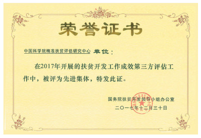 | 图 1 中国科学院精准扶贫评估研究中心被国务院扶贫办评为“先进集体” |