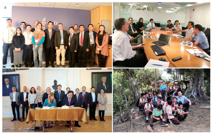 | 图 10 国际交流与合作 (a)2017年4月访问美国哈佛大学肯尼迪学院国际发展中心;(b)2017年8月访问世界银行;(c)2018年10月与波兰科学院乡村与农业发展研究所签署合作协议;(d)2019年10月参加印尼召开的国际地理联合会农业地理与土地工程委员会第三届国际会议,会后考察当地的贫困村 |