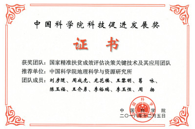 | 图 2 “国家精准扶贫成效评估决策关键技术及其应用团队”获中国科学院科技促进发展奖 |