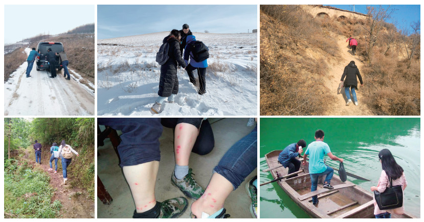 评估时间一般在夏季或冬季。2016年实地调研工作恰逢7—8月份,这时我国南方地区暴雨频繁,北方地区酷暑烈日,多地遇到滑坡与泥石流灾害,以及蚊虫叮咬、脱水中暑等问题;而2017—2020年实地调研工作改在春节前夕开展,这个时节北方地区天寒地冻,部分贫困地区山高路远,时有大雪封山、路断受阻等困难(图 7)。“但是,广大评估队员怀着对完成国家重大任务的强烈的责任感和使命感,尽职尽责、不畏艰辛、攻克难关,一次次出色完成了评估任务,这种精神风貌深深感动了当地的干部和群众,每年都涌现出一批先进人物和事迹。”龙花楼感动地说。