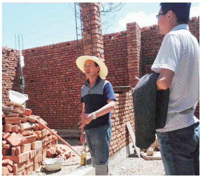 在陈正文的组织协调下,仅仅用2年时间,王能干的8个自然村全部通上了硬化道路,主路到全部119户村民家门口的小巷道全部硬化、庭院全部硬化;消灭了全部23户d、c级危房(图 3);自来水、生活用电家家入户,动力电入村;厕所改建成1 2式清洁旱厕;村里安装了30盏太阳能路灯;建成了村民文化活动中心。