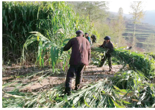甜高粱的种子是中国科学院近代物理研究所利用重离子辐射技术选育的新品种,经试验,每年可以收割3茬饲草,亩产可达7吨以上,能协助解决村里养殖户大型牲畜过冬饲料。而且用甜高粱当饲料喂羊,羊的品质能提高一大截。2018年,帮扶队初步种植试验示范田20亩;而到2019年,在宕昌县车拉乡、南阳镇、将台乡总共种植了500亩(图 7)。
